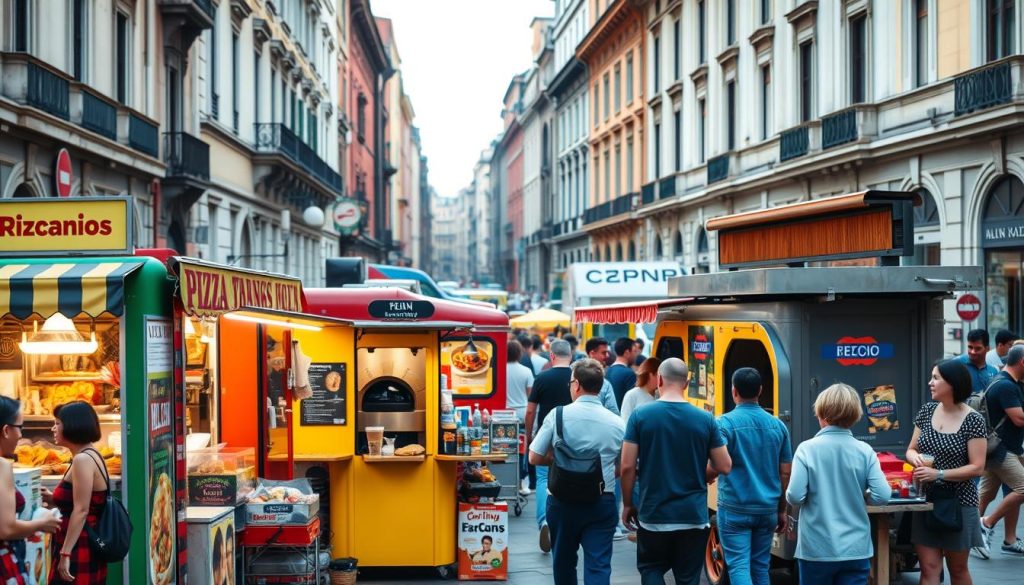 The Milan pizza market is full of chances for new business owners in mobile pizza. It’s key to know the competition, market size, and growth. This lively field draws both locals and tourists, so finding the right customers is vital.